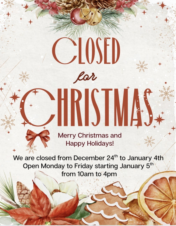 Open Monday to Friday starting January 5th from 10am to 4pm